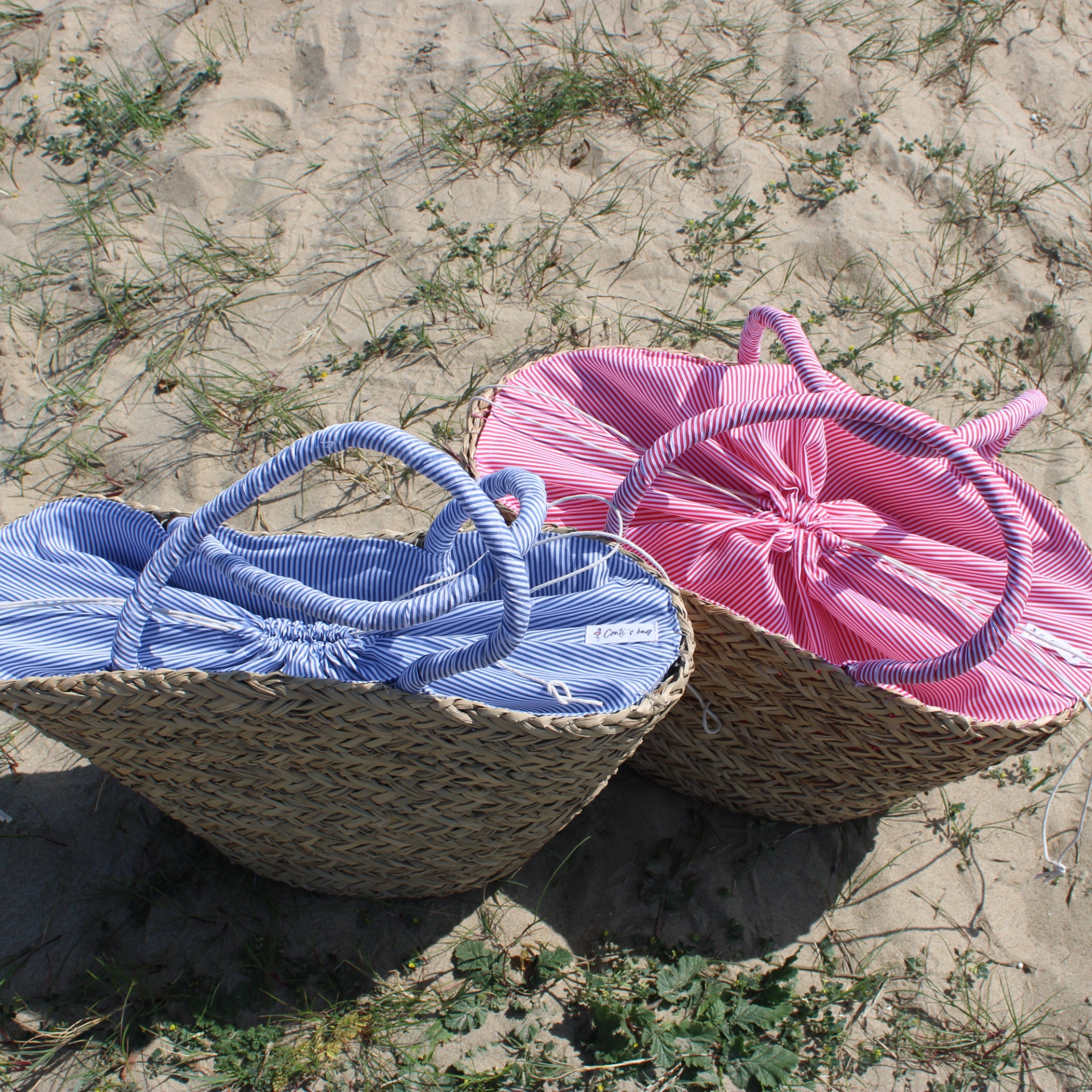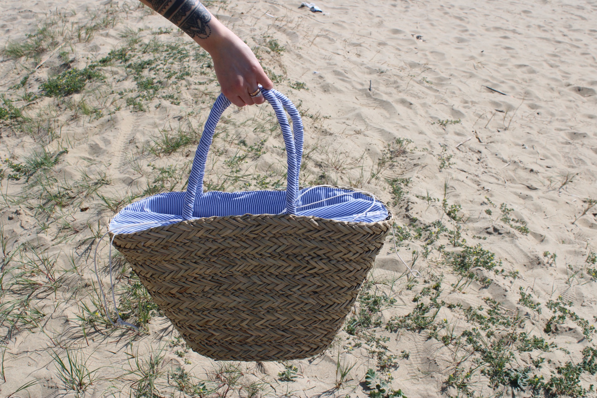 Borsa di paglia per il mare semplice con fodera chiudibile interna a righe!